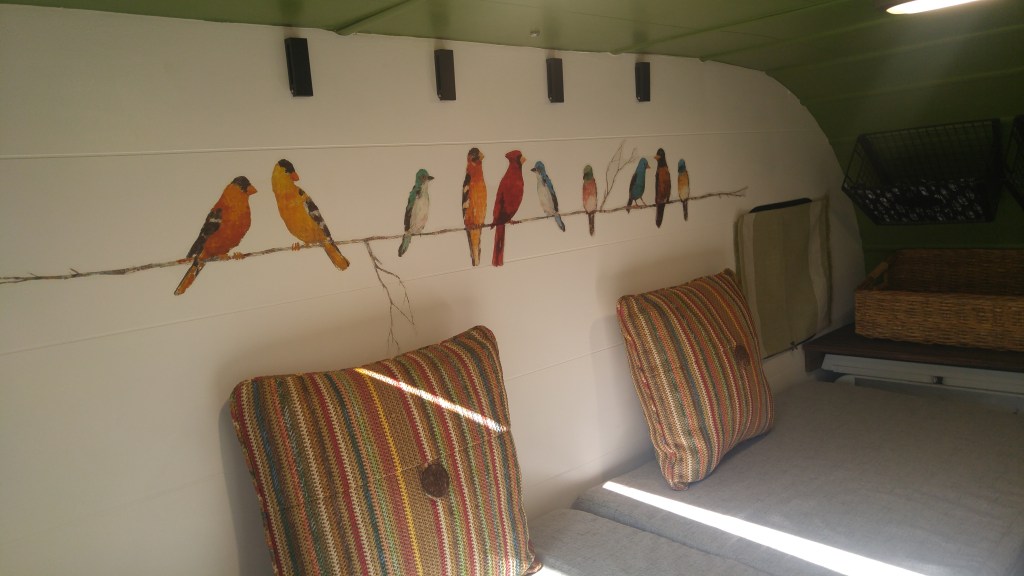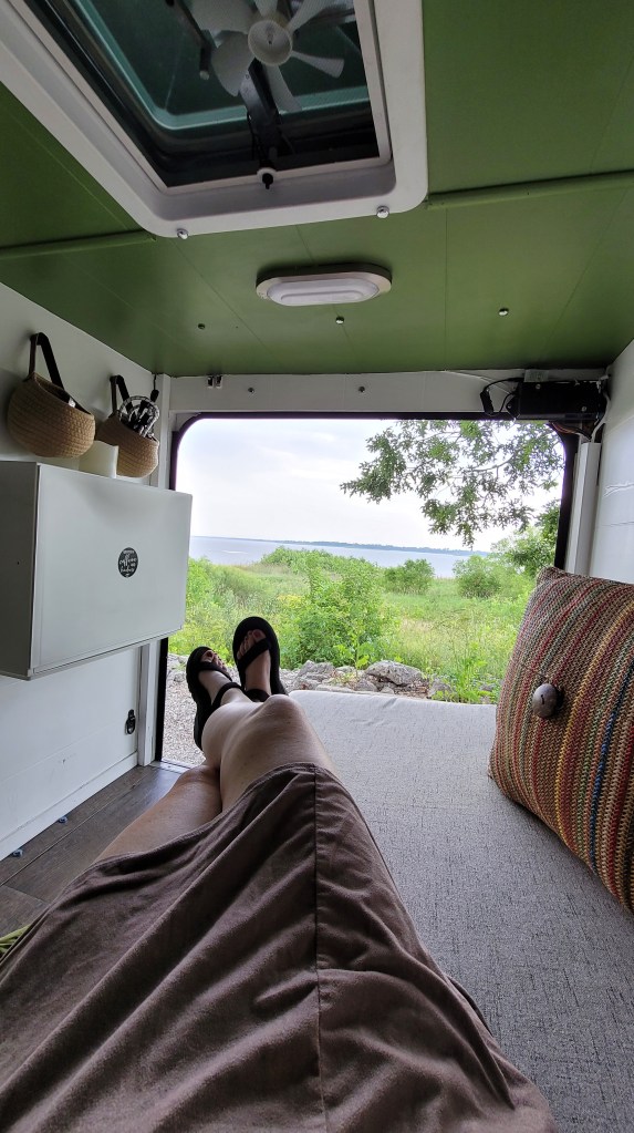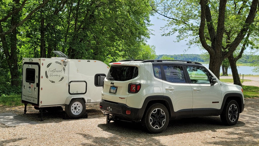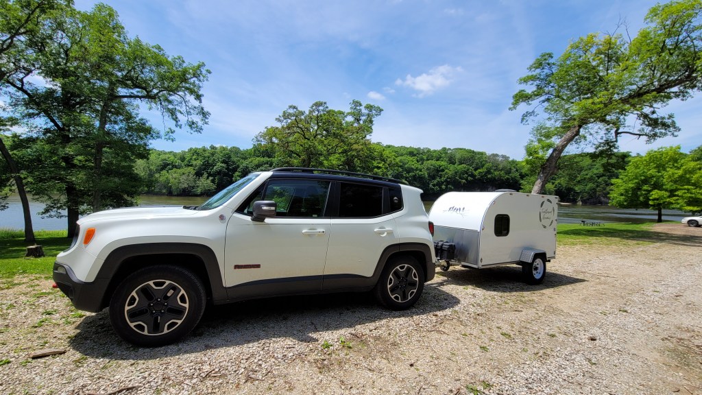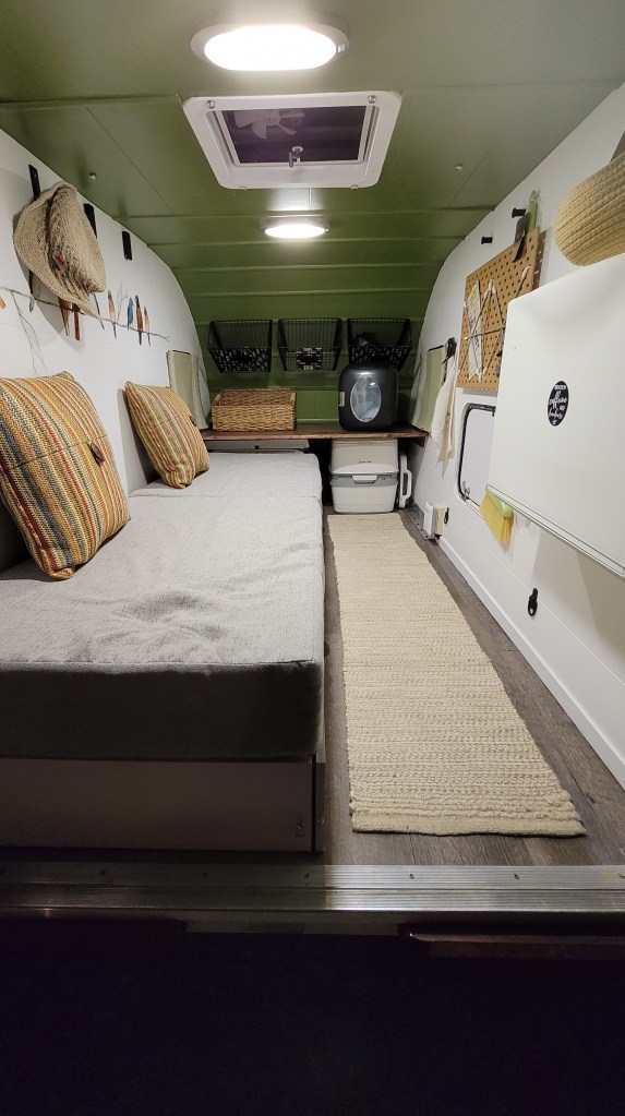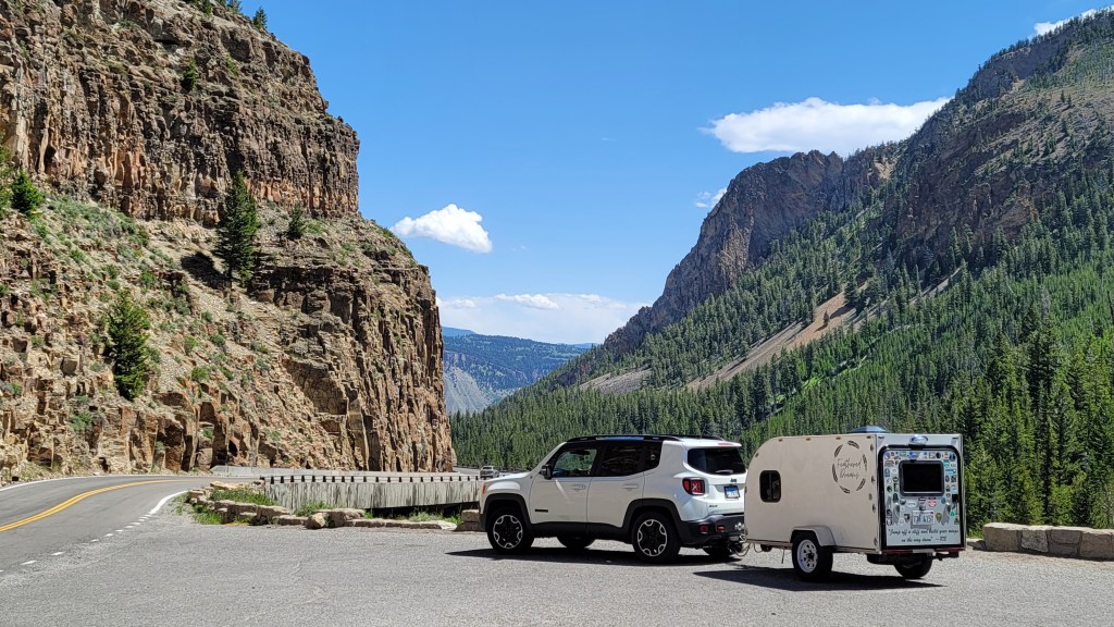 In 2021, I sold a 38-foot school bus and (with the proceeds) bought a home-built square-drop camper. It wasn’t too cozy at first, but I had a vision…. and completely transformed the interior. I also added bigger tires and a few decals on the exterior, but the trailer never really made it out of Iowa that first year due to the axle coming apart on I-80 about 45 minutes east of Omaha. Thankfully, a friend in Cedar Rapids had the means and skills to get it back on the road….a fortunate save, despite my newfound fear to tow it too far after the repair.