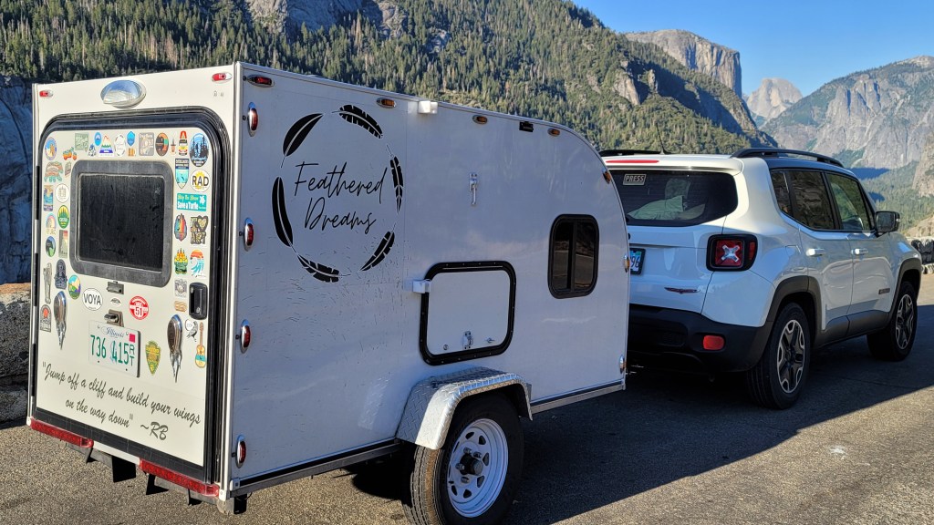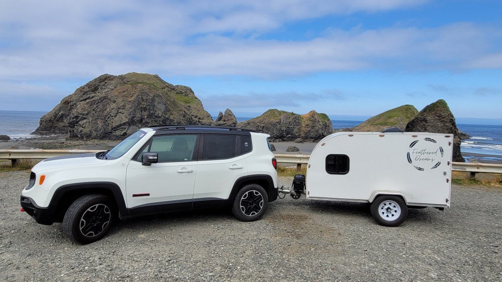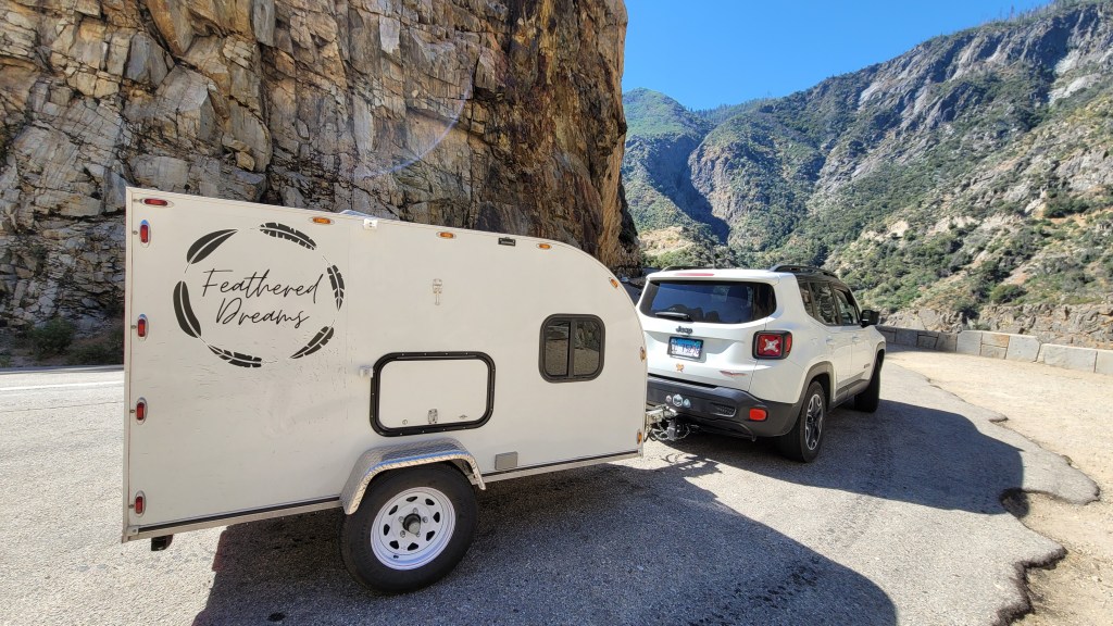 After that, the rest is pretty much history. To date, “Gloria” (as I now call her) has traveled over 8,000 miles…..traversing deserts, mountains, innumerous potholes, and some of the most winding roads I’ve ever encountered through canyons and coastal shoreline. When my friend who repaired the axle said it would be “glorious,” he was right. It was glorious, indeed….after my renewed faith in this little trailer inspired another attempt at reaching the west coast with her….which I did, with nothing but a little uneven wear on the inside of one of the tires upon return.